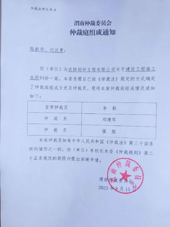 武陟同懷工程有限公司與陸新華、代漢勇一案公告